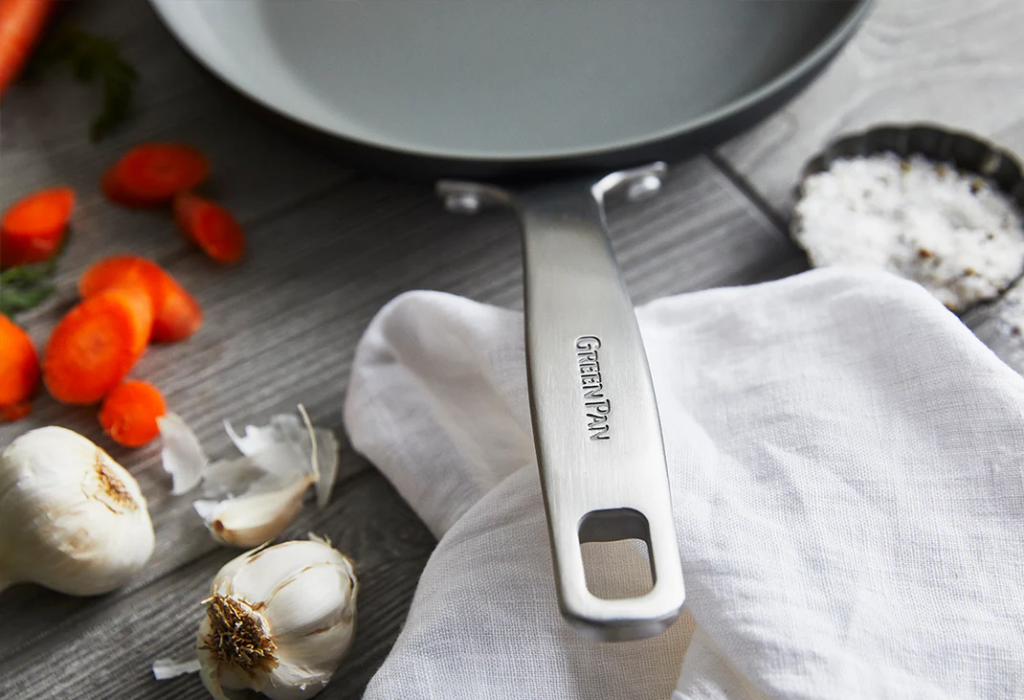 All GreenPan products are coated with Thermolon™. This was the first and best ceramic nonstick coating to be launched on the market in 2007. Since then, we’ve created eight generations of Thermolon™. Each is manufactured without forever chemicals known as PFAS and without any Lead or Cadmium. The raw materials, or precursors, are derived from Silicon Dioxide (not to be confused with silicone, which is a type of semi-conductor), which of course originates from sand. The precursor materials join up to form sprayable solution. The liquid part is mainly water. After spraying onto the pans, the coating is then cured in an oven at a relatively low temperature. As a result, the curing process requires 60% less heating energy versus conventional nonstick pans, which means 60% fewer CO2 emissions.HOW SAFE IS THERMOLON™?