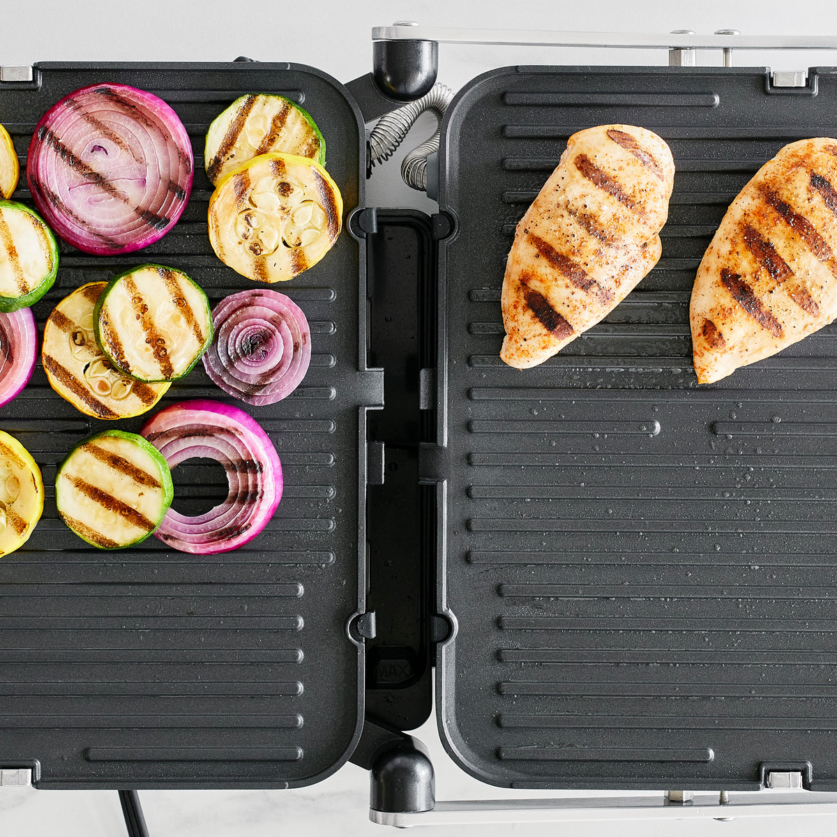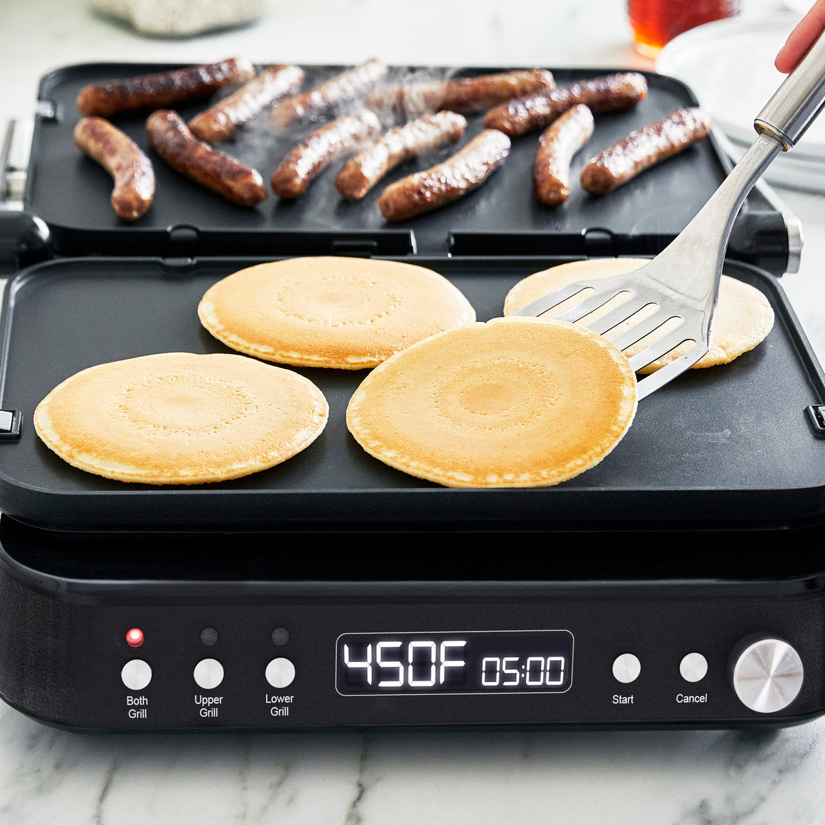Discover a new way to maximize your countertop cooking with the GreenPan Bistro Noir Grill & Griddle. Reversible grill and griddle plates deliver plenty of options to customize your cooking experience.