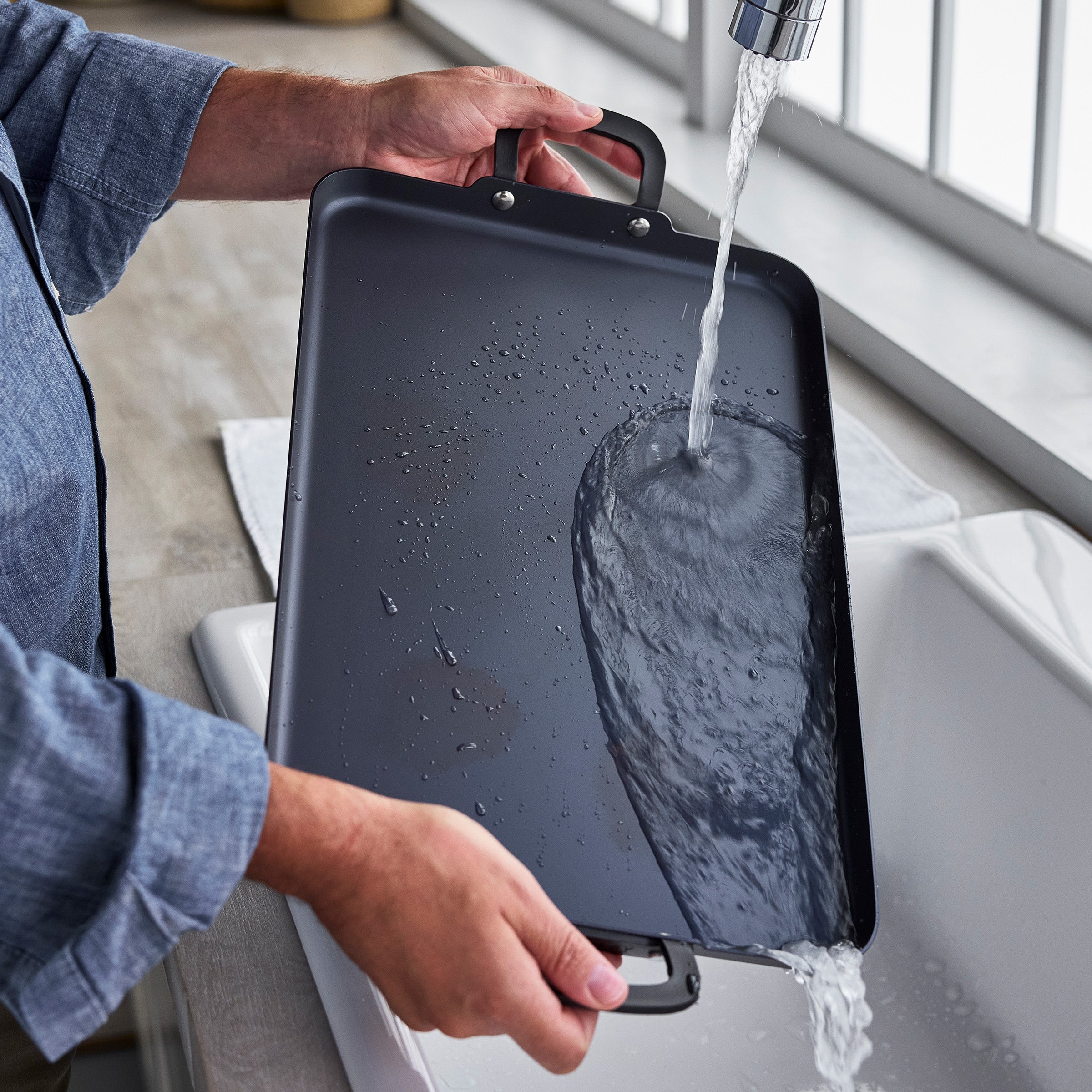 Created in partnership with Bobby Flay. this double burner griddle is built from durable carbon steel for pro-level performance. Pre-seasoned for a natural nonstick patina. its spacious design is perfect for breakfast. lunch. dinner. and everything in between.