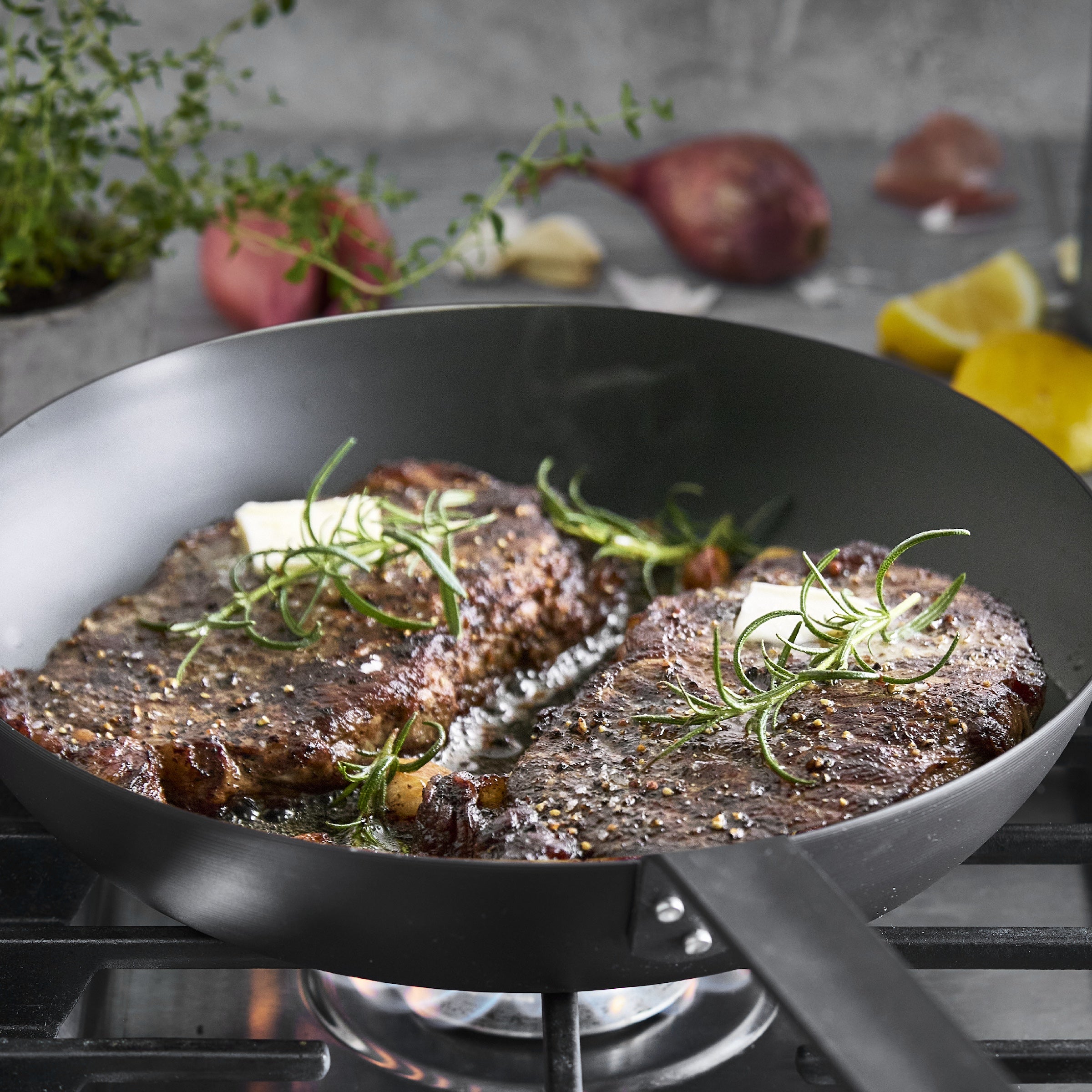 Get all three essential pan sizes for ultimate versatility and professional-grade meals. These pre-seasoned. fast-heating carbon steel pans improve over time and are oven safe. induction ready. and suitable for open flame cooking.