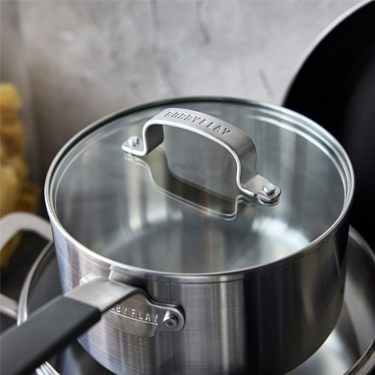 Bobby Flay by GreenPan Stainless Steel Uncoated & PFAS-Free Nonstick 12-Piece Cookware Set