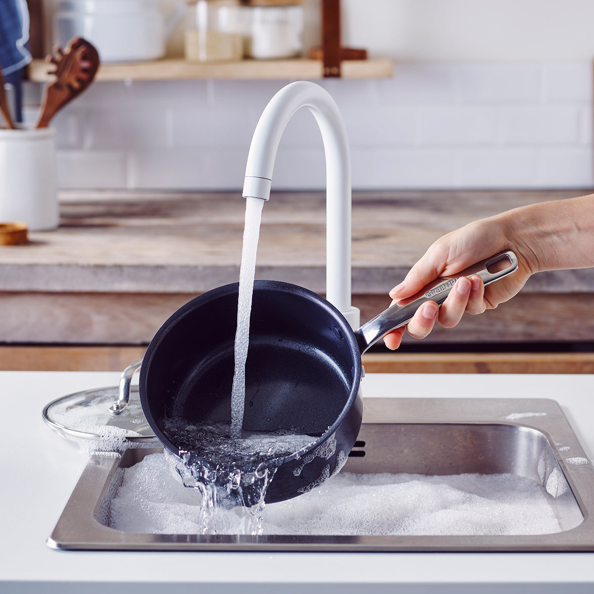 This 1-quart and 2-quart set is your ticket to perfectly cooked rice. mac and cheese. or homemade sauce. The ultra-tough hard anodized aluminum bodies won’t warp. chip. or scratch no matter many breakfasts. lunches and dinners they turn out.