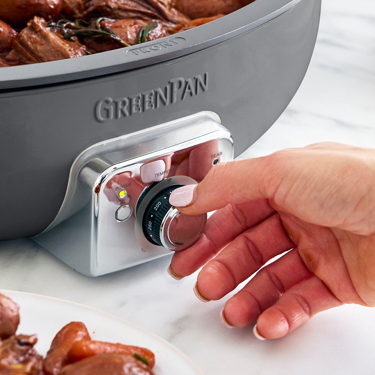 Incredibly versatile. easy to use. and effortless to clean??the Elite electric skillet is designed to make countertop cooking simple. The one-knob control lets you dial in your temperature and the embedded heating element heats quickly and evenly while eliminating hot spots.