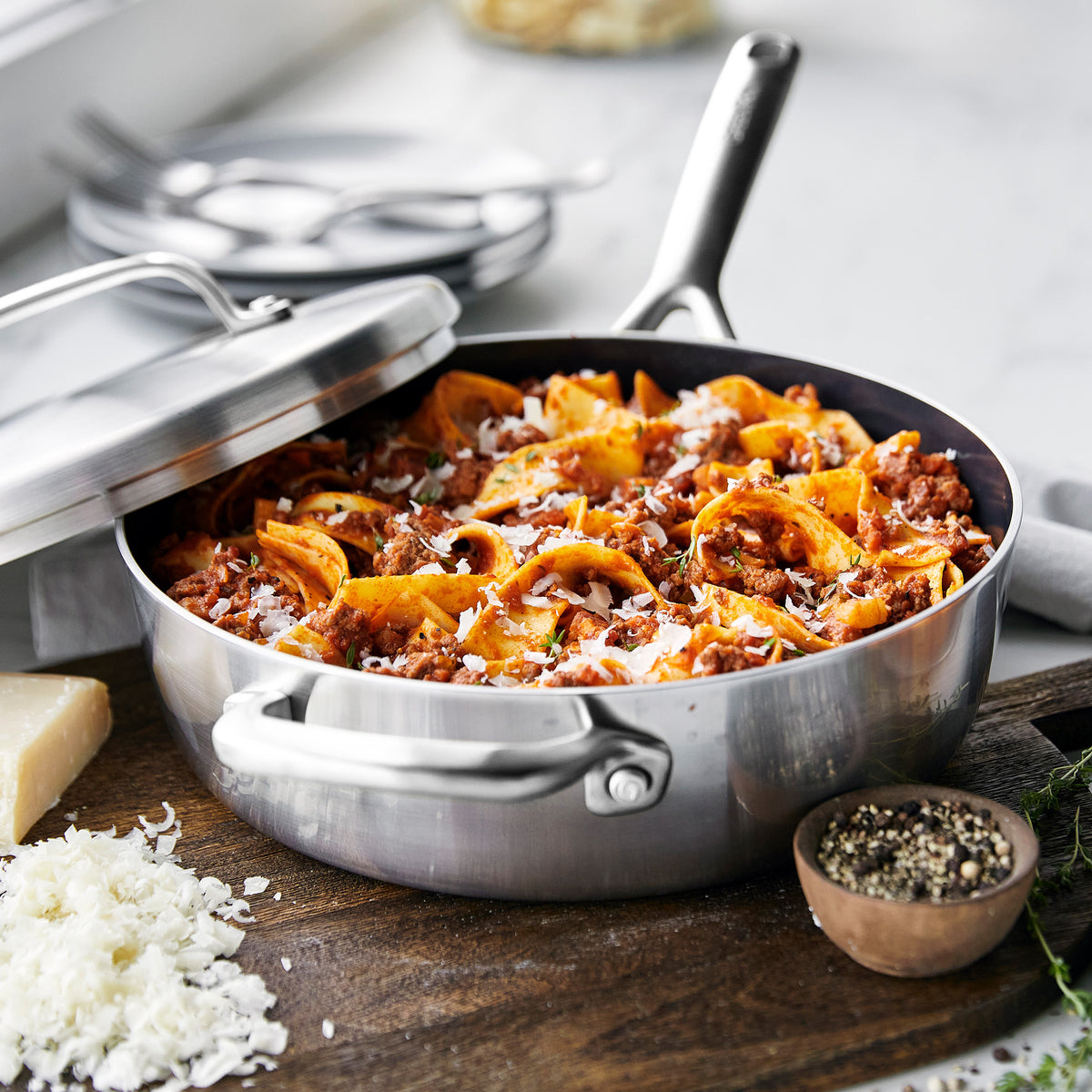For a brand-new go-to. this spacious saut?? pan features our most advanced technology yet. The 5-ply body is optimized for remarkable performance and our Infinite8 ceramic nonstick makes this pan ultra-durable. effortless to clean. and PFAS-free.