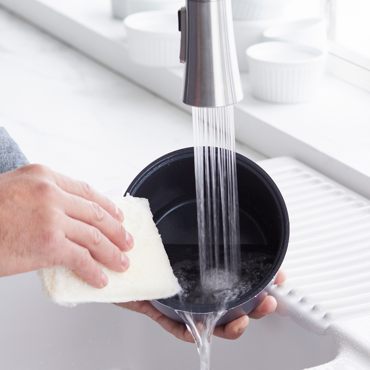 No more sticky rice (unless that’s what you’re making)??this rice cooker’s healthy ceramic nonstick coating keeps cleanup easy. Plus. it automatically adjusts to deliver perfect rice and grains every time!?Makes 4 cups of cooked rice.