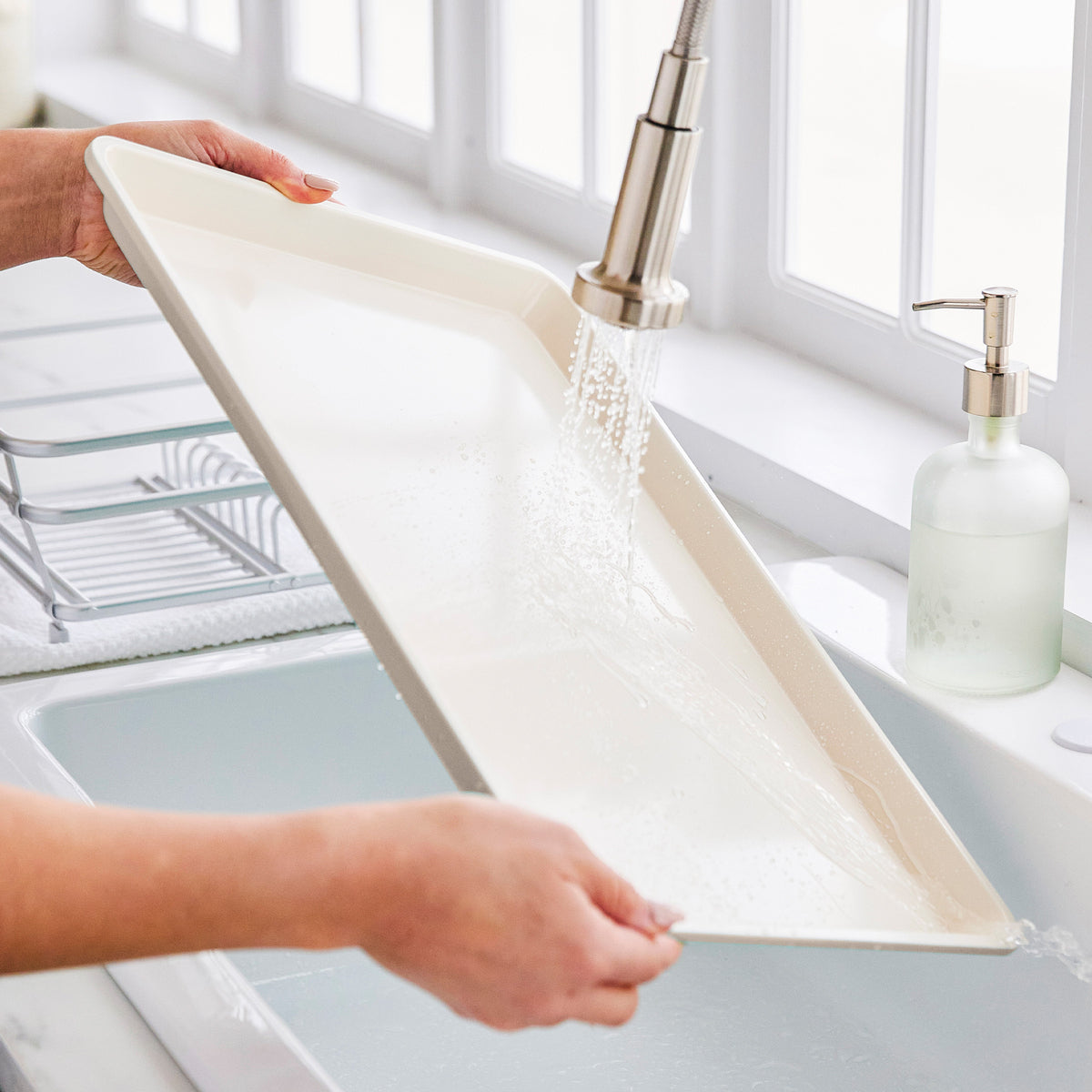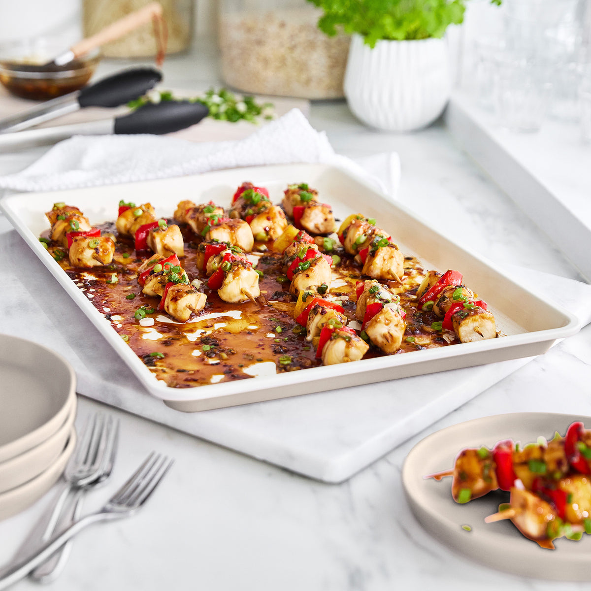 Featuring a healthy ceramic nonstick coating. this cookie sheet is perfect for everything from baked sweets to savory creations like nachos. chicken wings. or easy sheet-pan suppers.