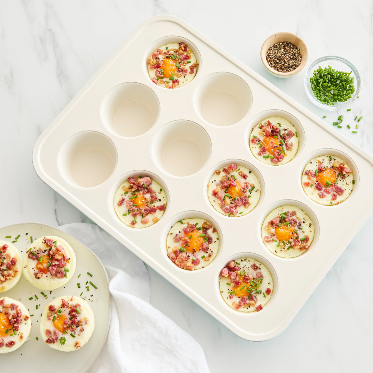 Made of heavy-duty steel for quick and even heating. this muffin pan is built to last through countless baking sessions. This healthy ceramic muffin pan offers effortless release for everything from sticky buns to pineapple upside-down cupcakes.