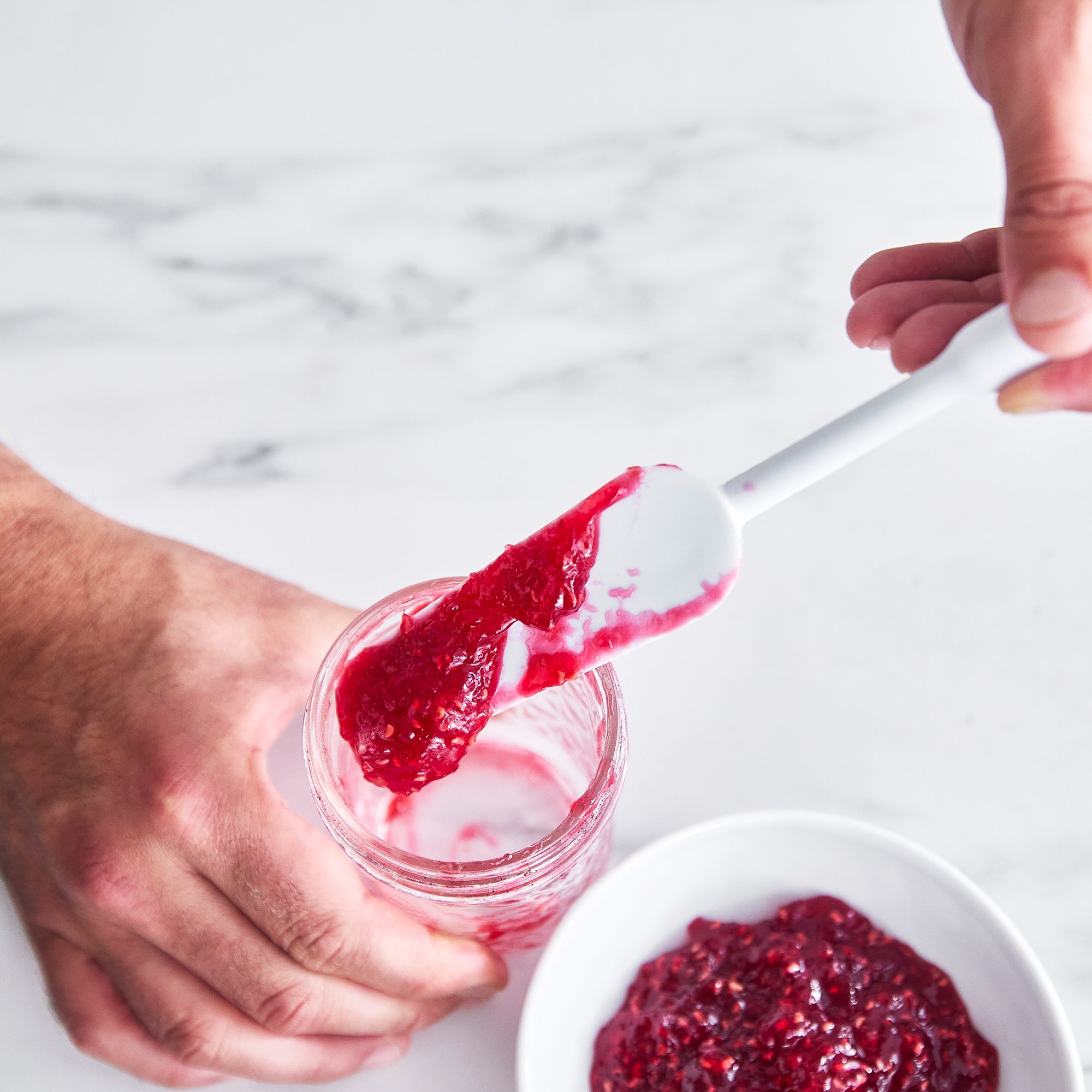 This pair of stain-free nonstick silicone spatulas is designed to cover a wide array of kitchen tasks. The large spatula reaches deep into blenders and containers. while the smaller spatula gets in hard-to-reach jars and bottles.