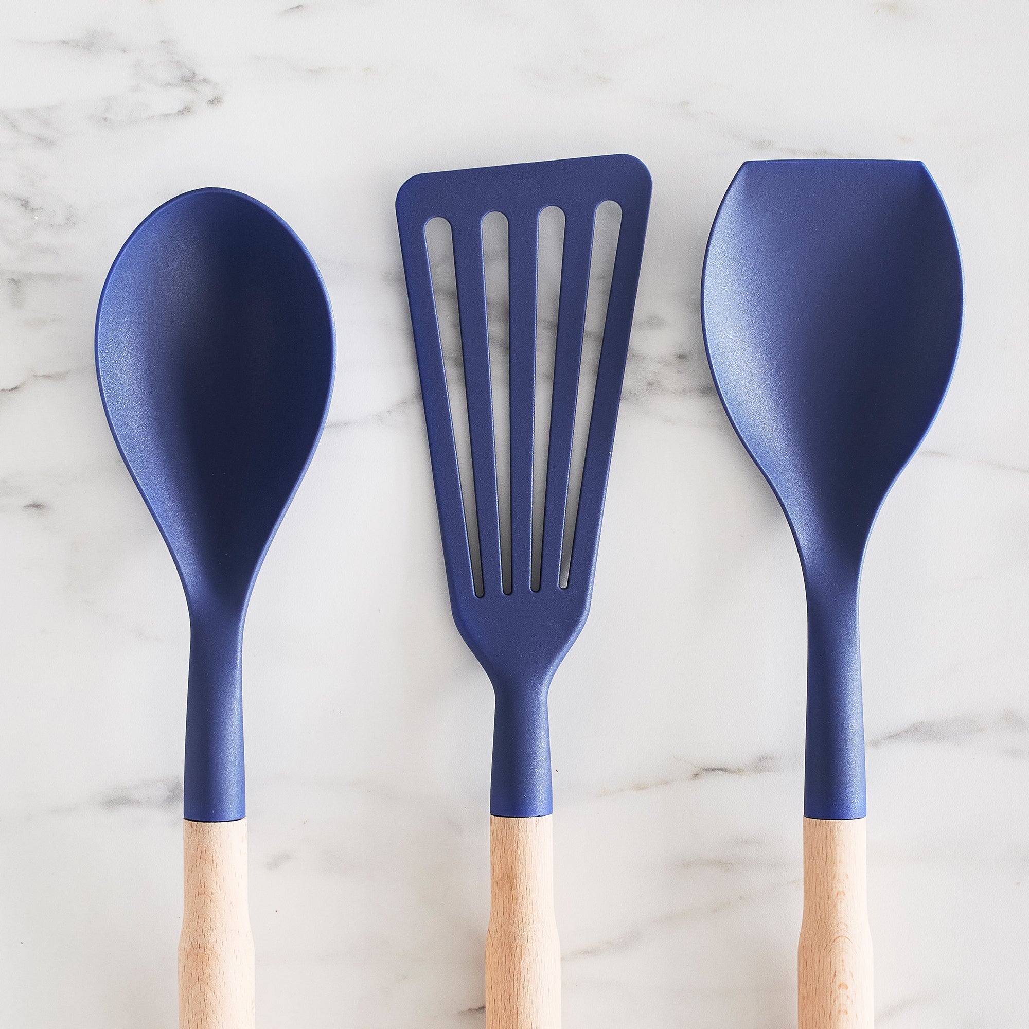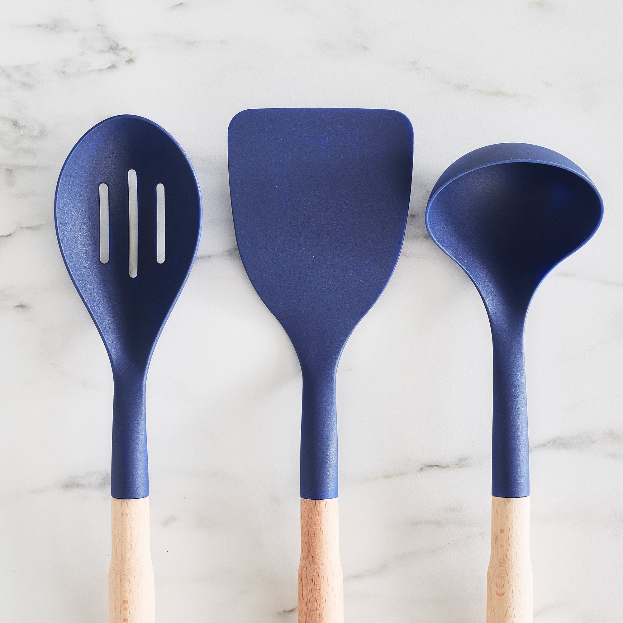 GreenLife Nylon & Wood Cooking Utensils with Ceramic Crock. 7-Piece Set | Blue