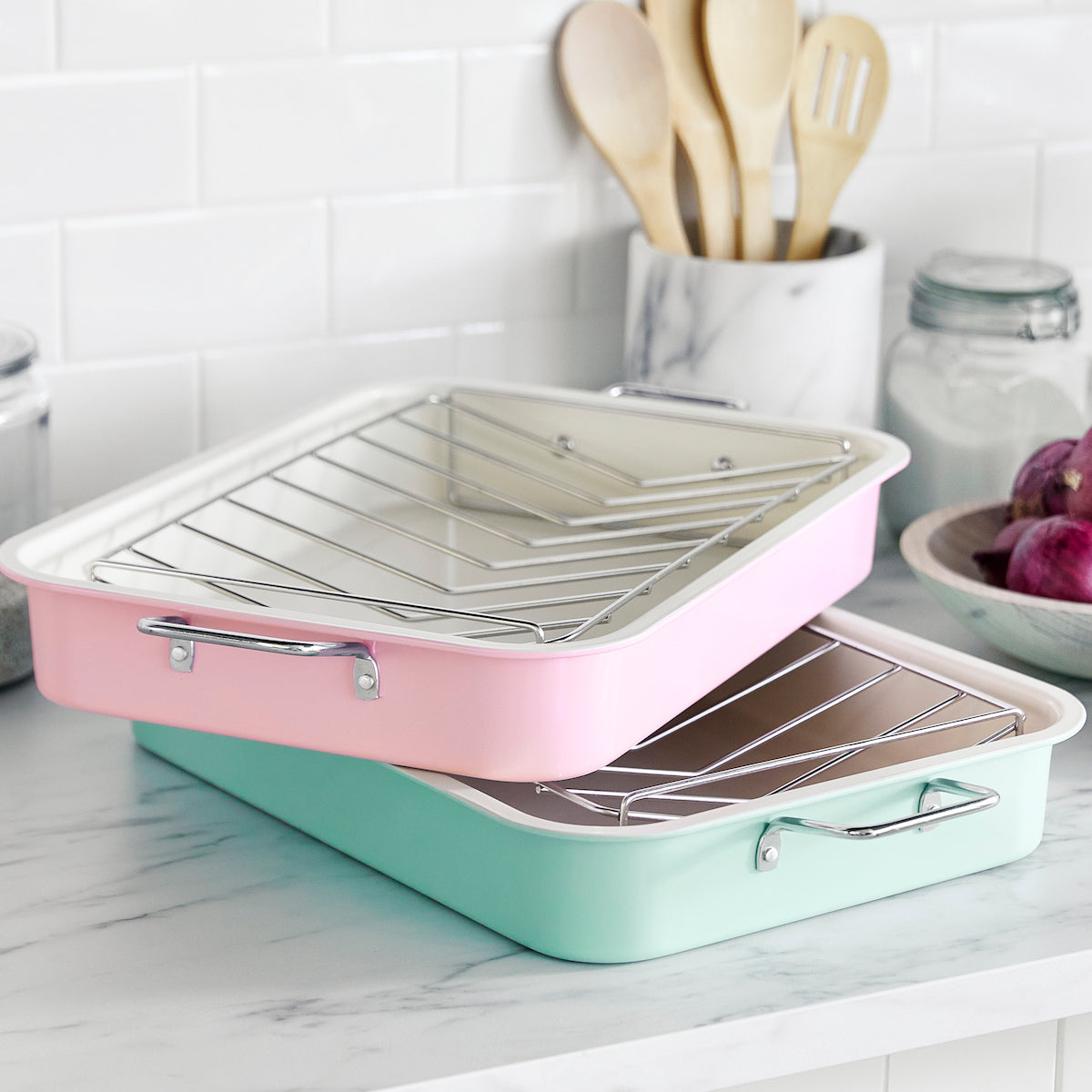 GreenLife Roaster With Stainless Steel Rack | Pink