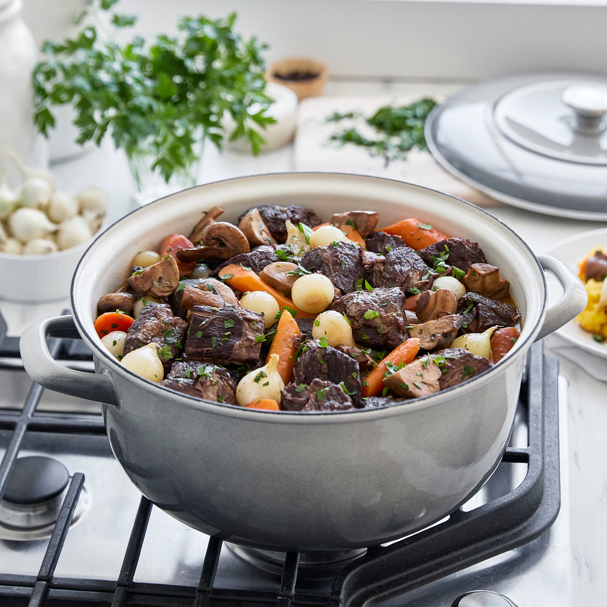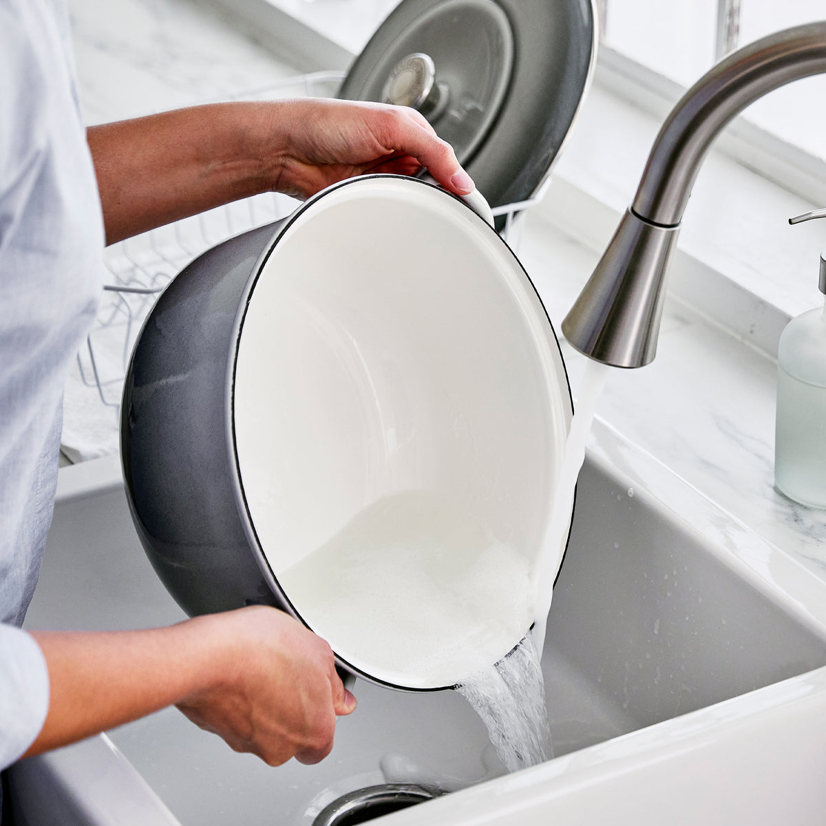 Handcrafted from enameled iron. this Dutch oven heats quickly and evenly. which lets you dial in the perfect temp for any meal. The spacious 7-quart design offers room for batch cooking. seafood boils. and family-sized portions.