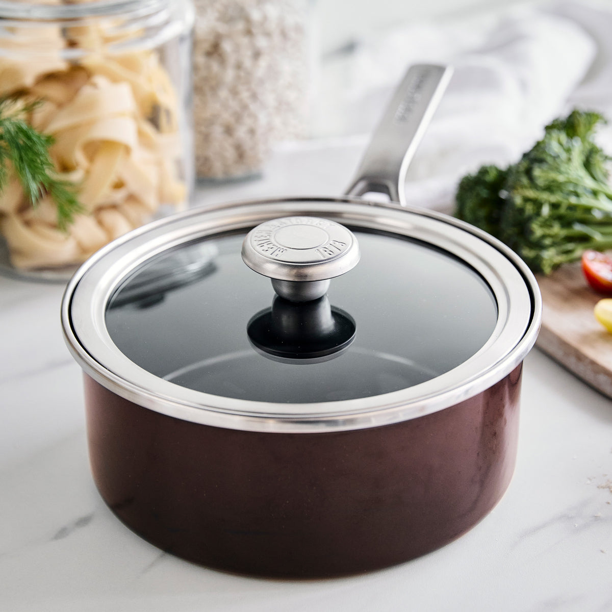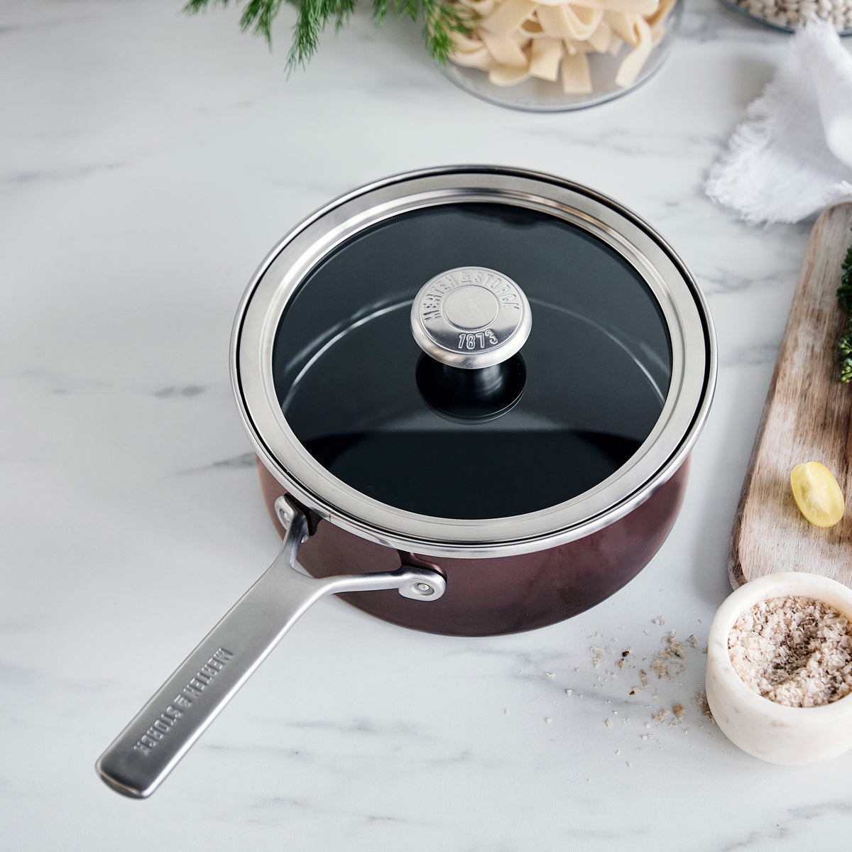 Merten & Storck Steel Core Enameled 2.5-Quart Saucepan with Lid | Chocolate Truffle