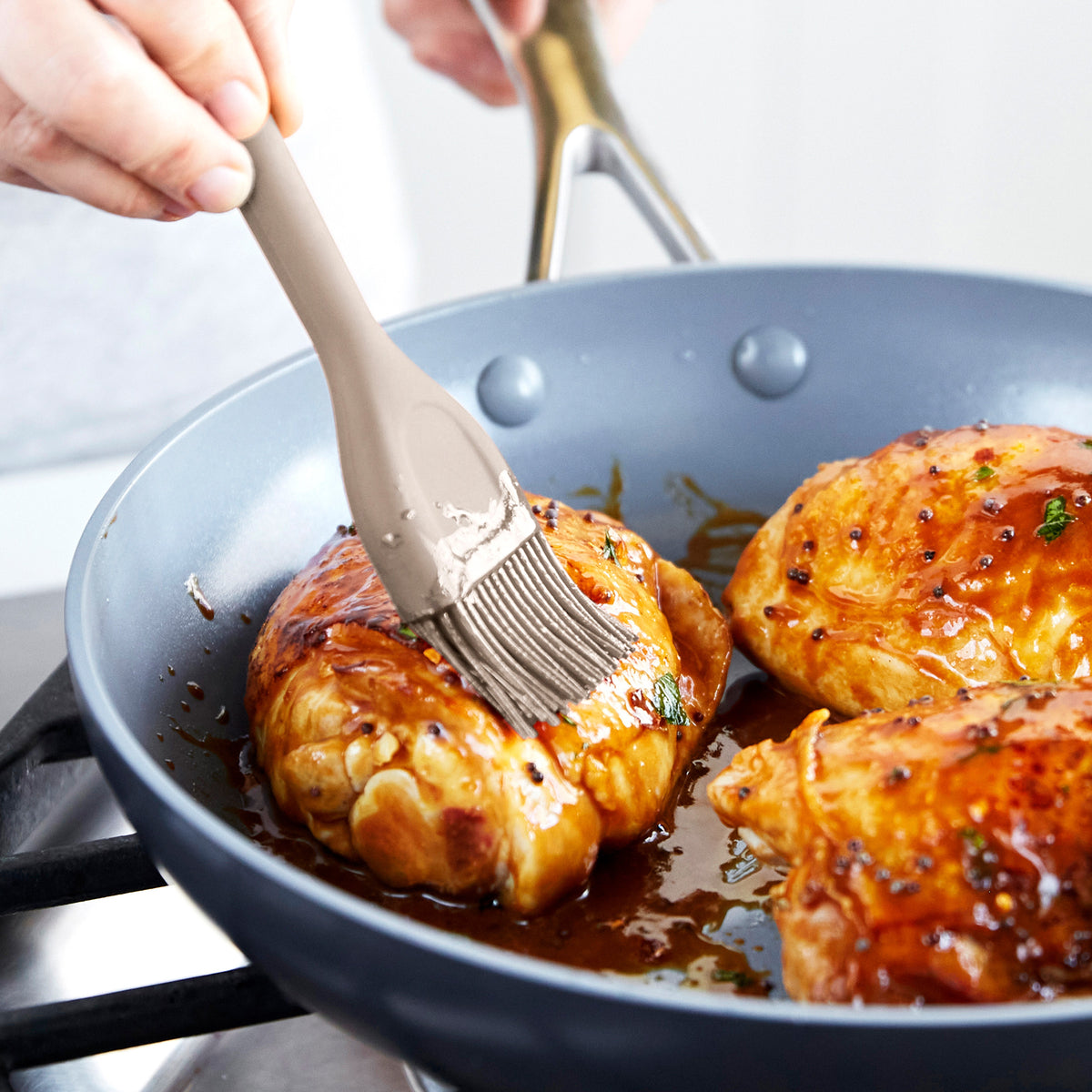 Great for coating. seasoning. or spreading sauces. this flexible silicone brush features a sturdy steel core that delivers total control. Plus. this scratch-free brush is perfect for use alongside ceramic nonstick pans.
