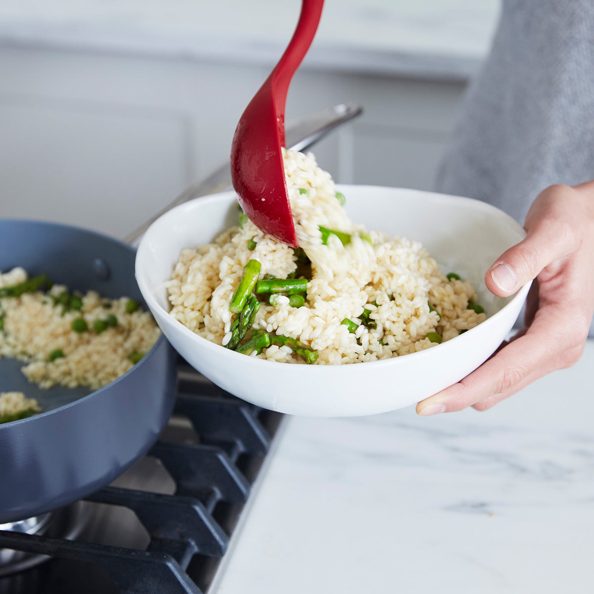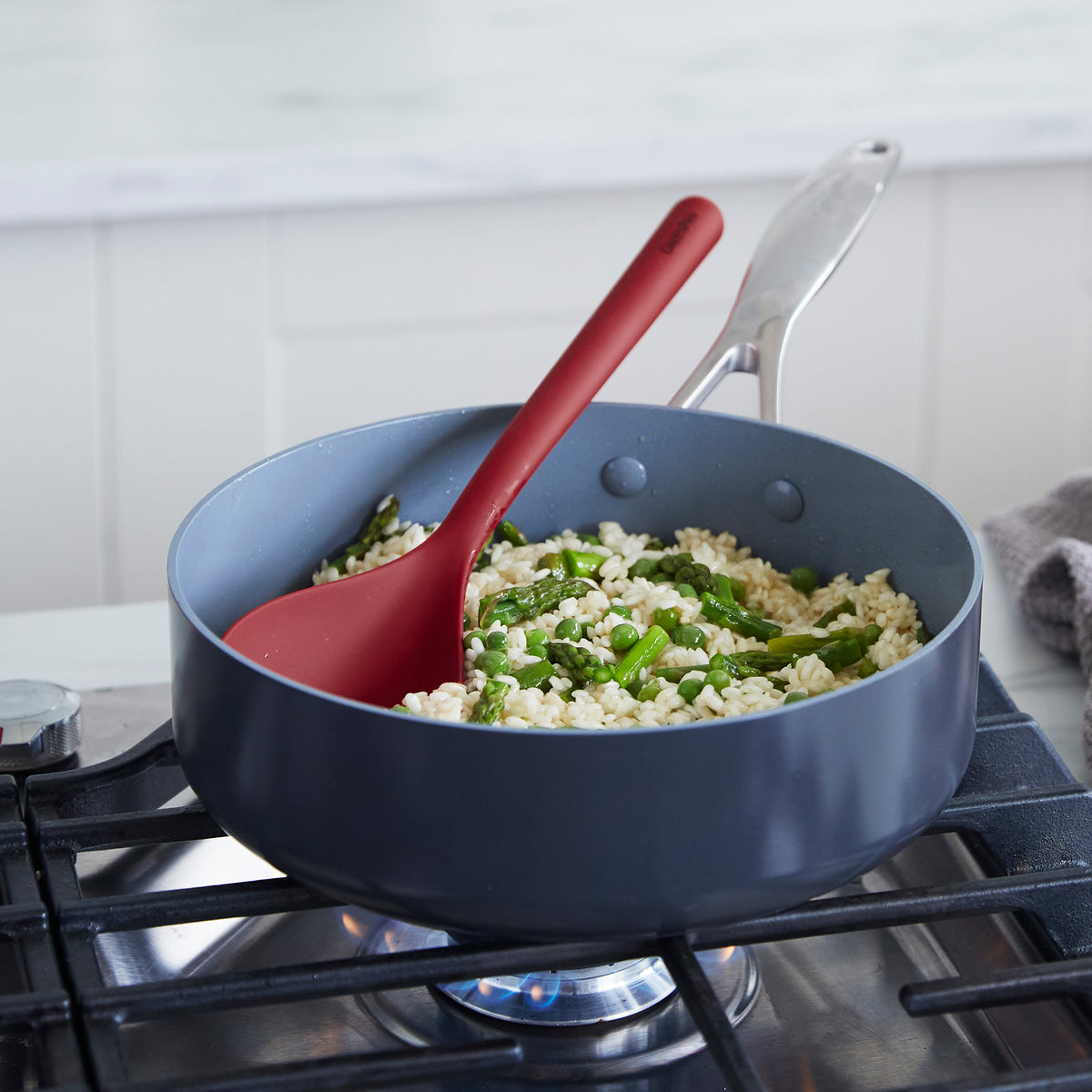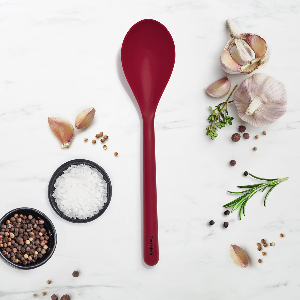 Designed for an array of tasks. this solid spoon helps you get into tight corners. scrape your sauces. and stir easily. The metal core delivers stability. plus the heat-resistant silicone exterior makes it perfect for ceramic nonstick pans.