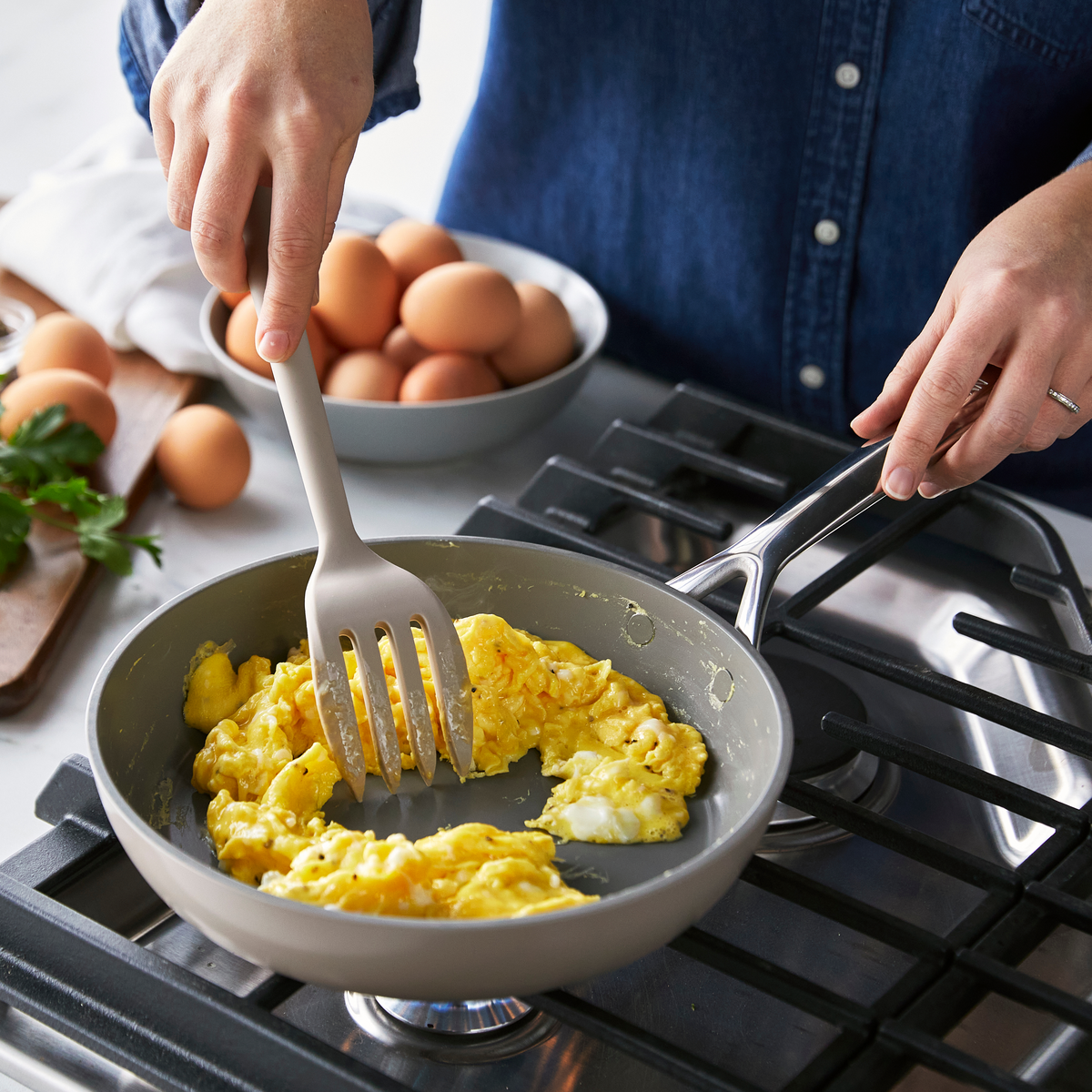 This fork’s endlessly versatile 10-in-1 design means you can stir. mix. blend. mash. scrape. whisk. lift. scoop. shred. and flip! This multipurpose fork is crafted from heat-resistant silicone. so it’s perfect for use alongside ceramic nonstick pans.