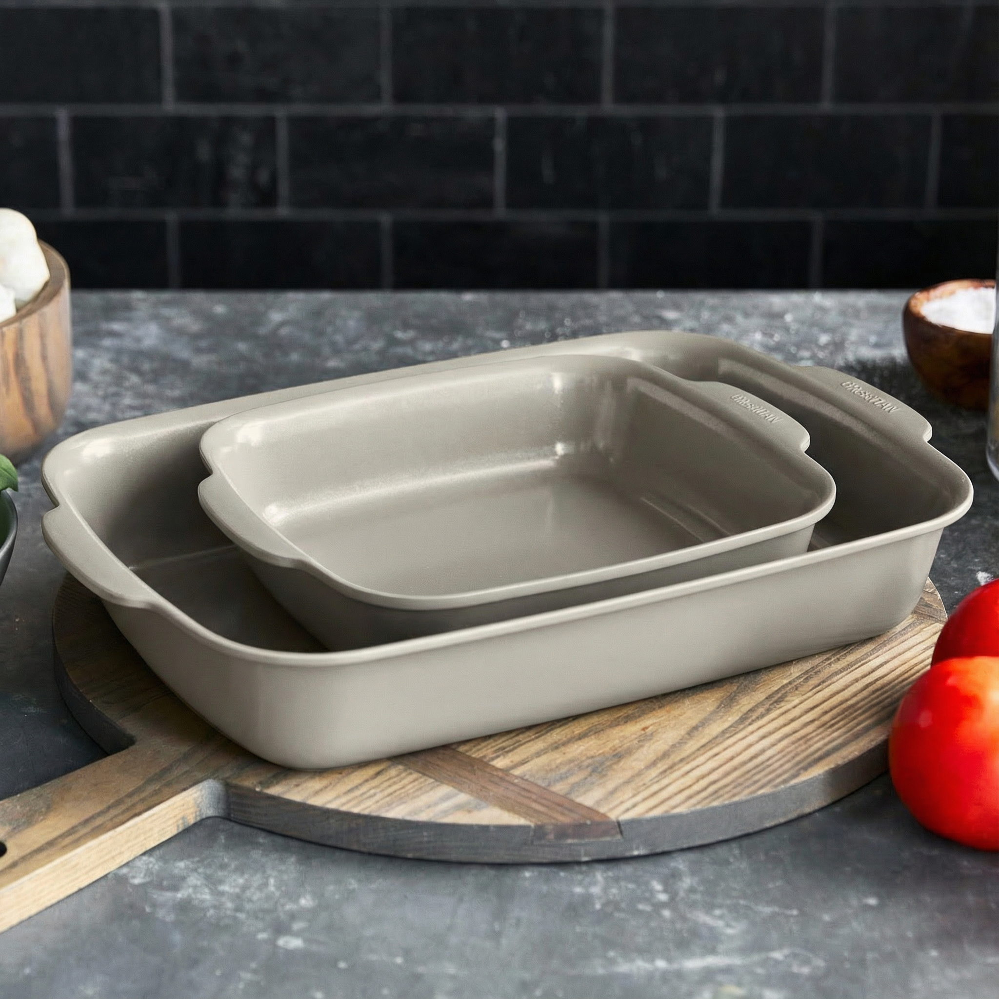 Premiere Ovenware Ceramic Nonstick 2-Piece Cake Pan Set | Taupe