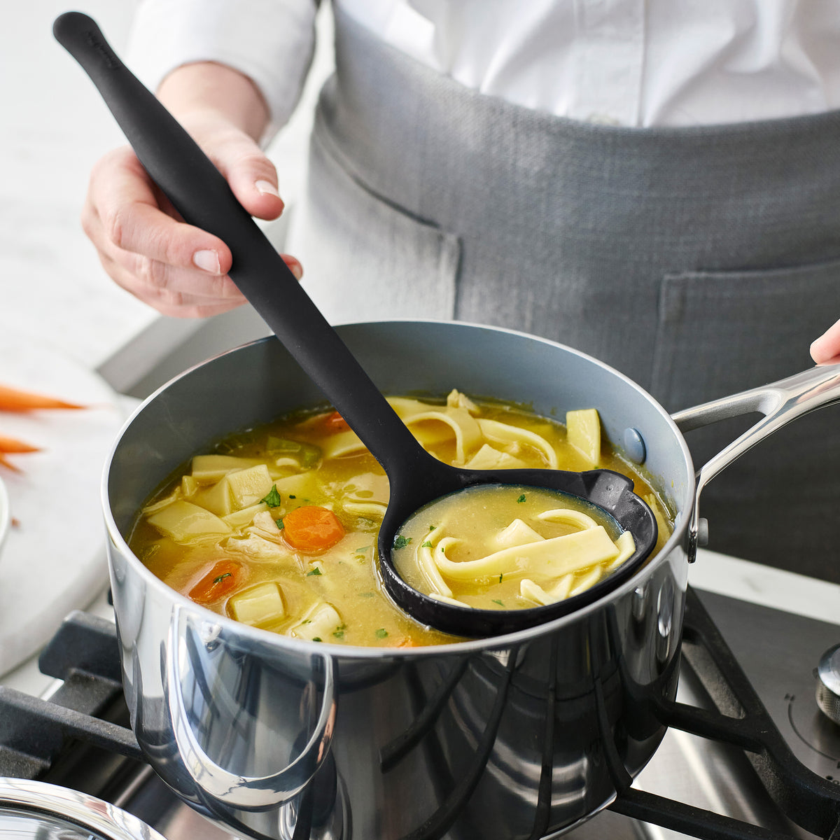 Our Premiere Ladle combines flexible. heat-resistant silicone with a secure anti-slip handle for optimal control and durability. Dishwasher safe for effortless cleanup. it’s your go-to tool for precision and convenience in the kitchen.