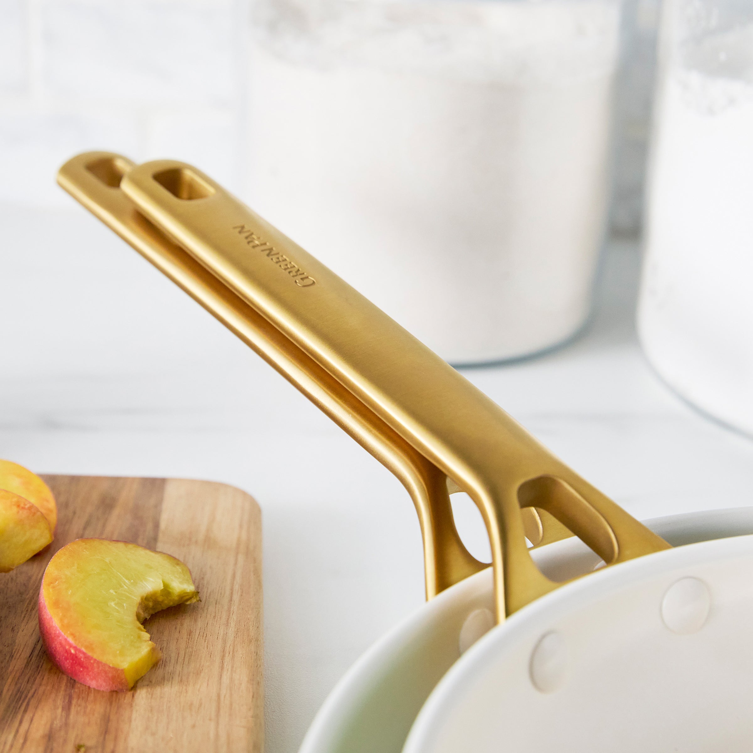 A powerful blend of design and innovation. Reserve Pro delivers exceptional durability. stackable convenience. and oven-ready strength. This frypan trio features our most advanced ceramic nonstick for PFAS-free performance that is second to none. With gorgeous gold-tone handles that nest neatly together. this set is your new go-to for everyday ease.