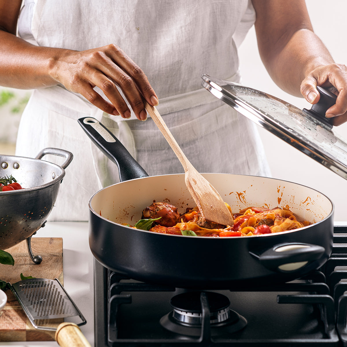 Rio Ceramic Nonstick 5-Quart Saut?? Pan with Lid | Black