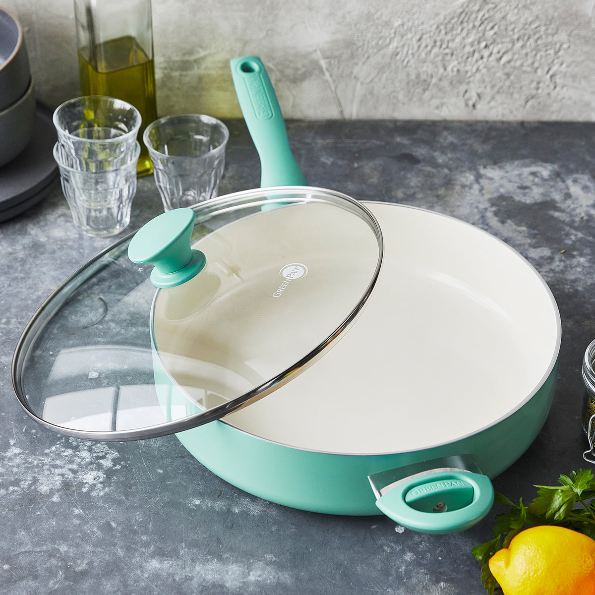 Rio Ceramic Nonstick 5-Quart Saut?? Pan with Lid | Turquoise