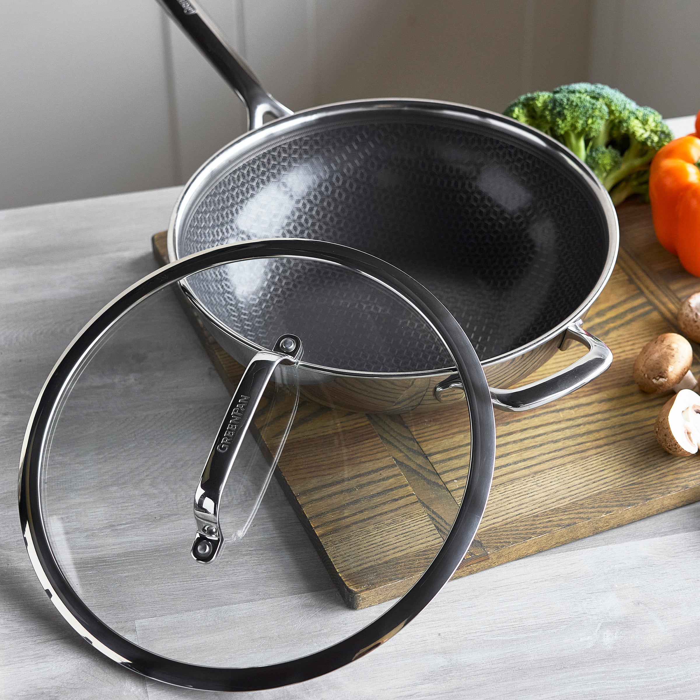 Spectra is the best of hybrid cooking. combining the strength and responsiveness of 3-ply stainless steel with the ease of our best ceramic nonstick. Powered by our innovative Thermobond? Technology. this 12 wok features a stainless steel etched pattern. a reinforced boost layer. and our signature PFAS-free nonstick for incredible searing. effortless release. and pro-level performance.