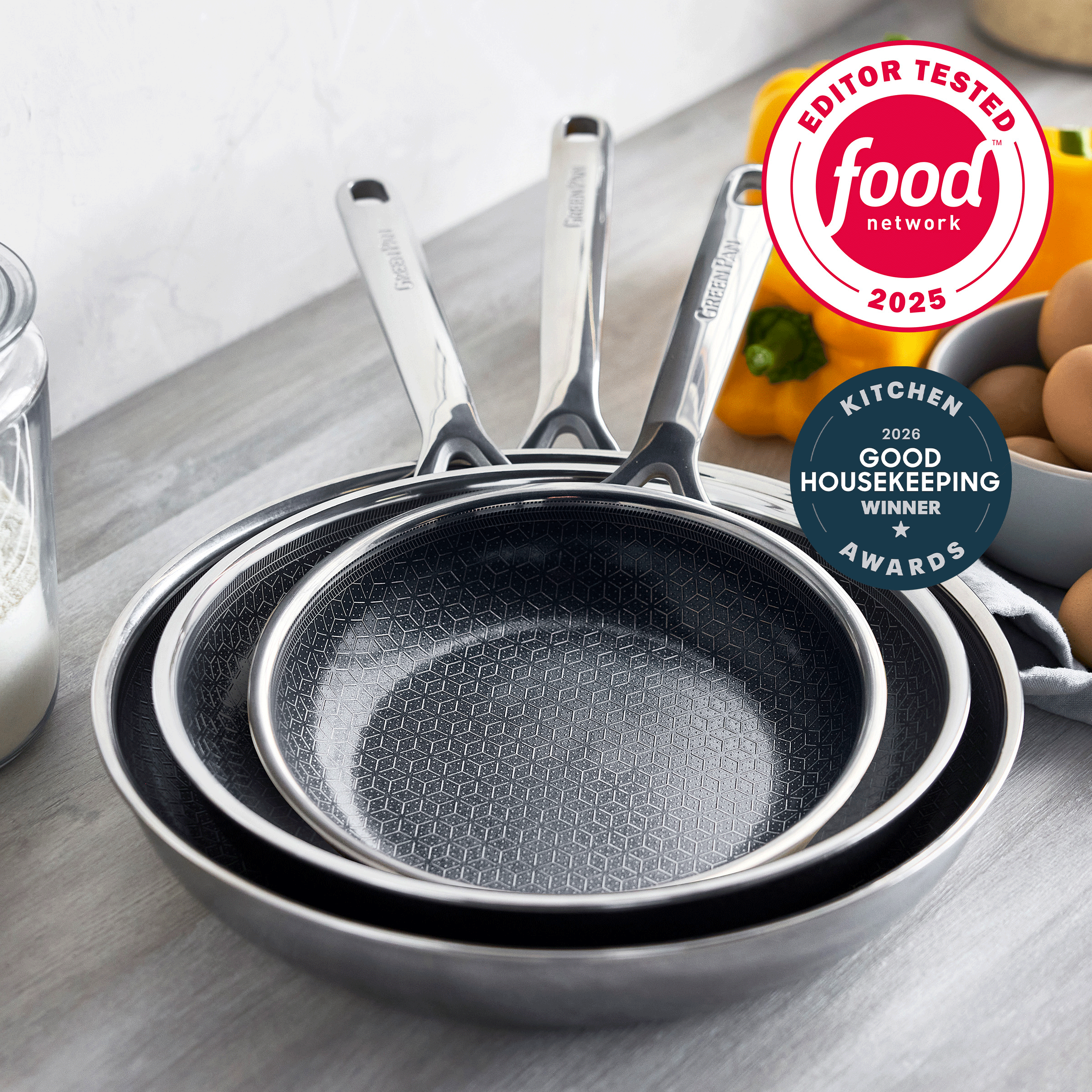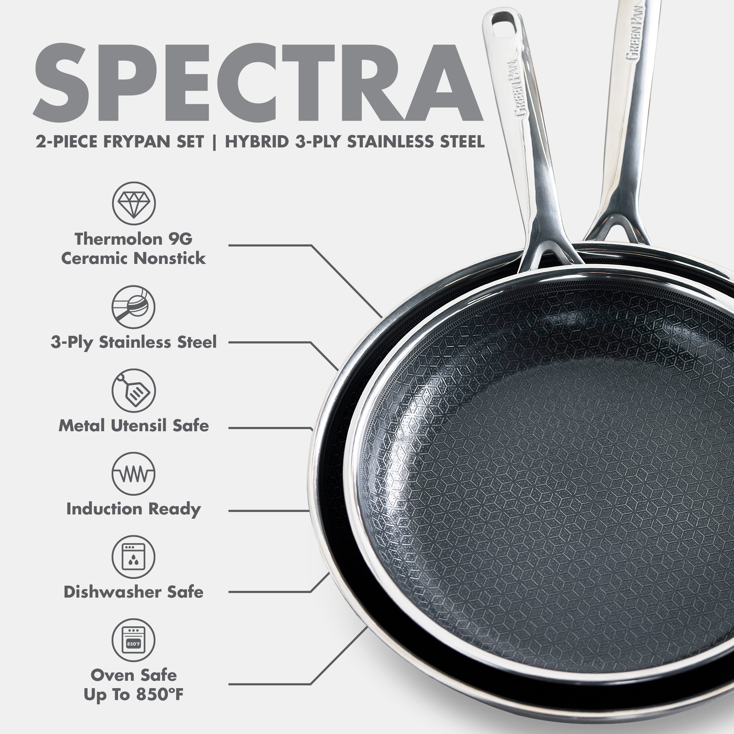 Spectra is the best of hybrid cooking. combining the strength and responsiveness of 3-ply stainless steel with the ease of our best ceramic nonstick. Powered by our innovative Thermobond? Technology. this frypan set features a stainless steel etched pattern. a reinforced boost layer. and our signature PFAS-free nonstick for incredible searing. effortless release. and pro-level performance.