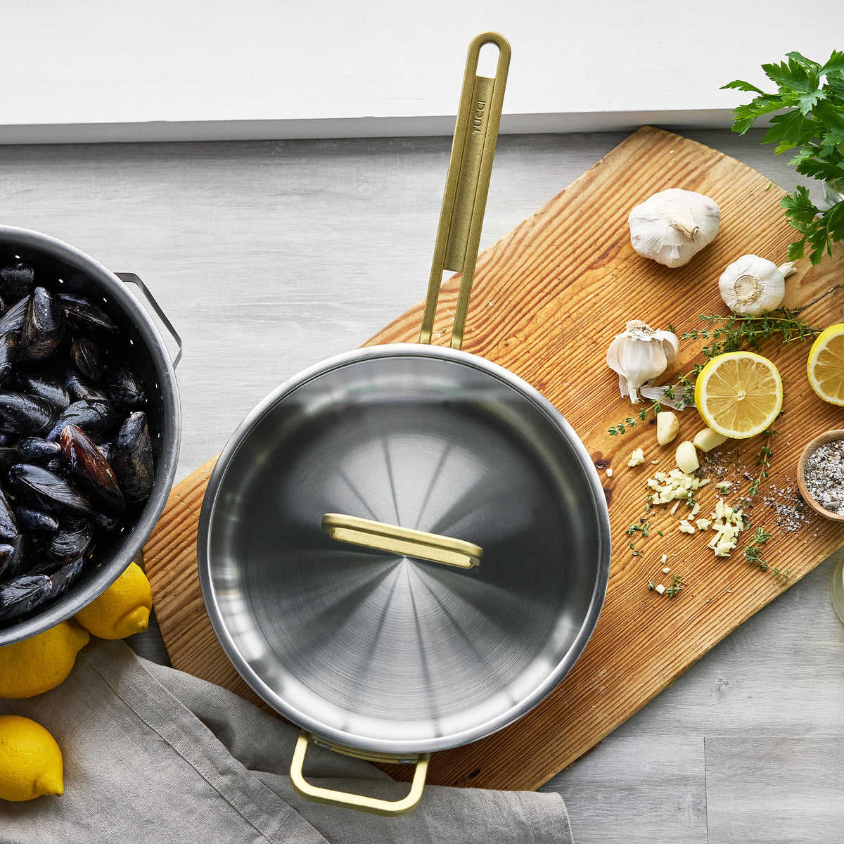 Stanley Tucci? Uncoated Stainless Steel 4-Quart Saut?? Pan with Lid