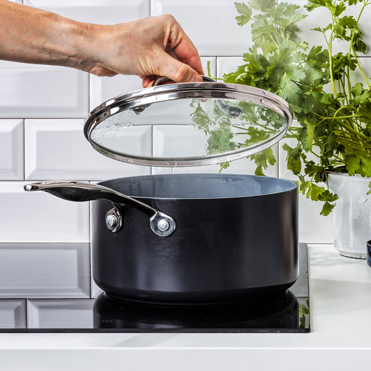 Valencia Pro Ceramic Nonstick 1.5-Quart and 3-Quart Saucepan Set with Lids | Gray