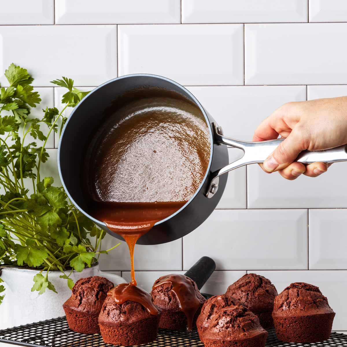 Crafted from hard anodized aluminum for maximum strength and scratch resistance. this saucepan set is ready to simmer soups and sauces at a moment’s notice. so you can make healthy meals any time of day.?