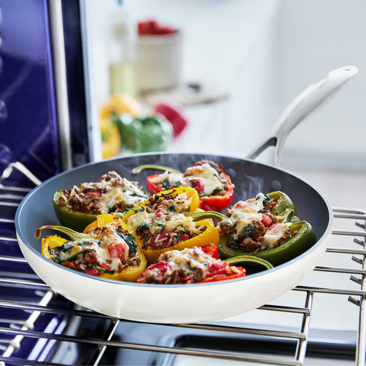 Valencia Pro Ceramic Nonstick 8. 9.5. and 11 Frypan Set | Cream