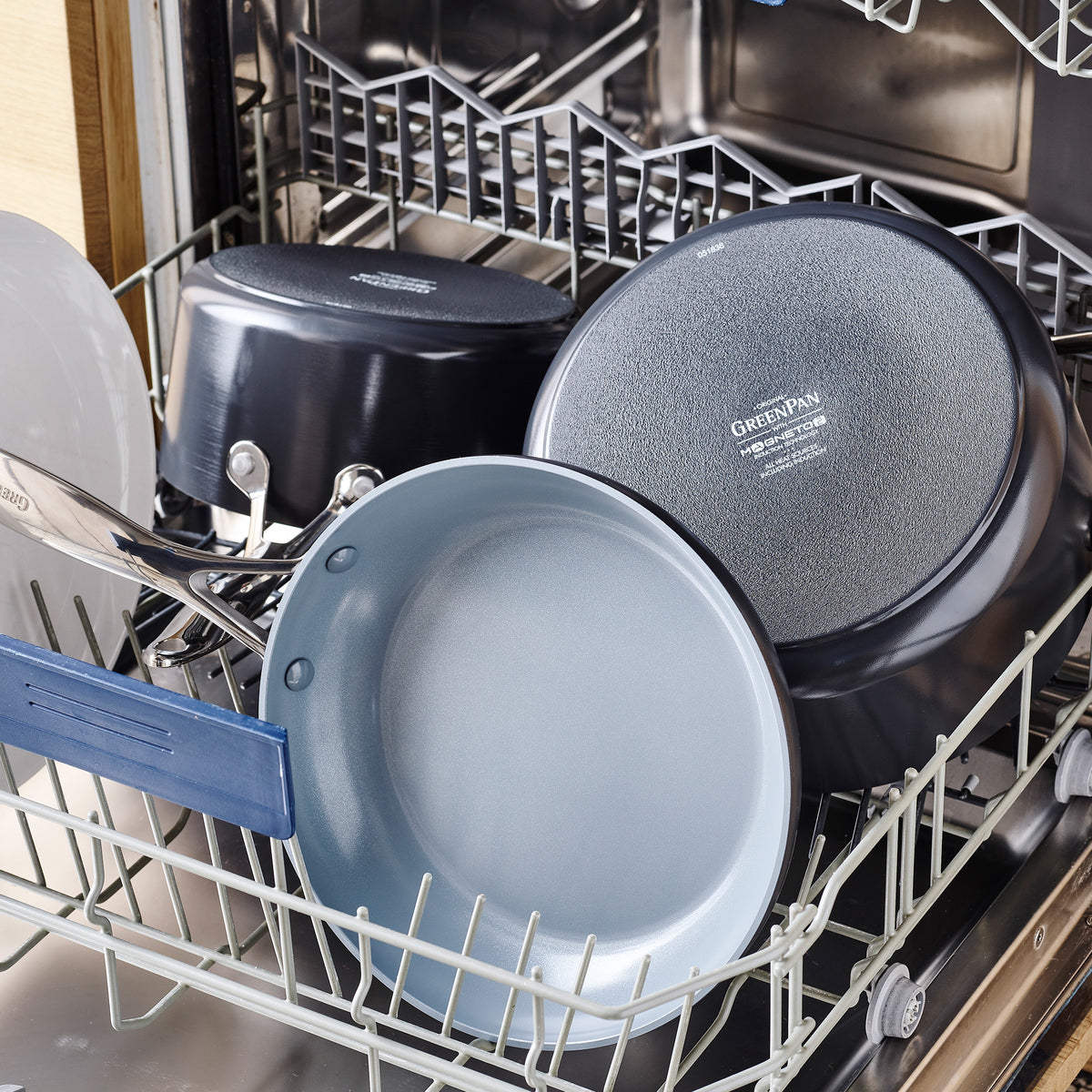 Crafted from hard anodized aluminum for strength and scratch resistance. these pans go the distance. In a handy 8. 9.5. and 11 set. they’re ready to sear steaks. braise veggies. or whip up omelettes at a moment’s notice.