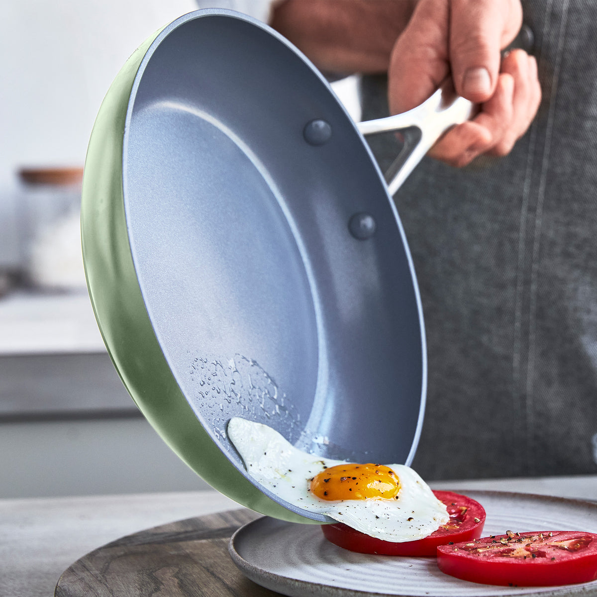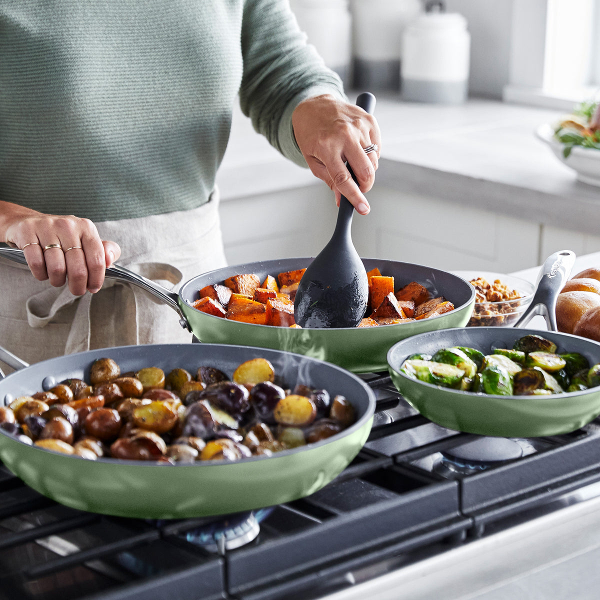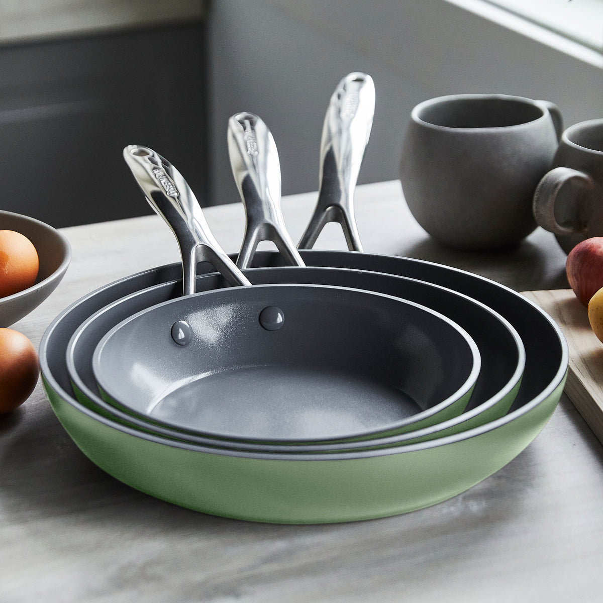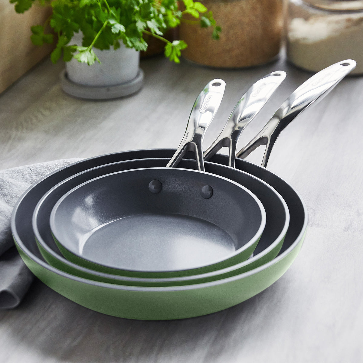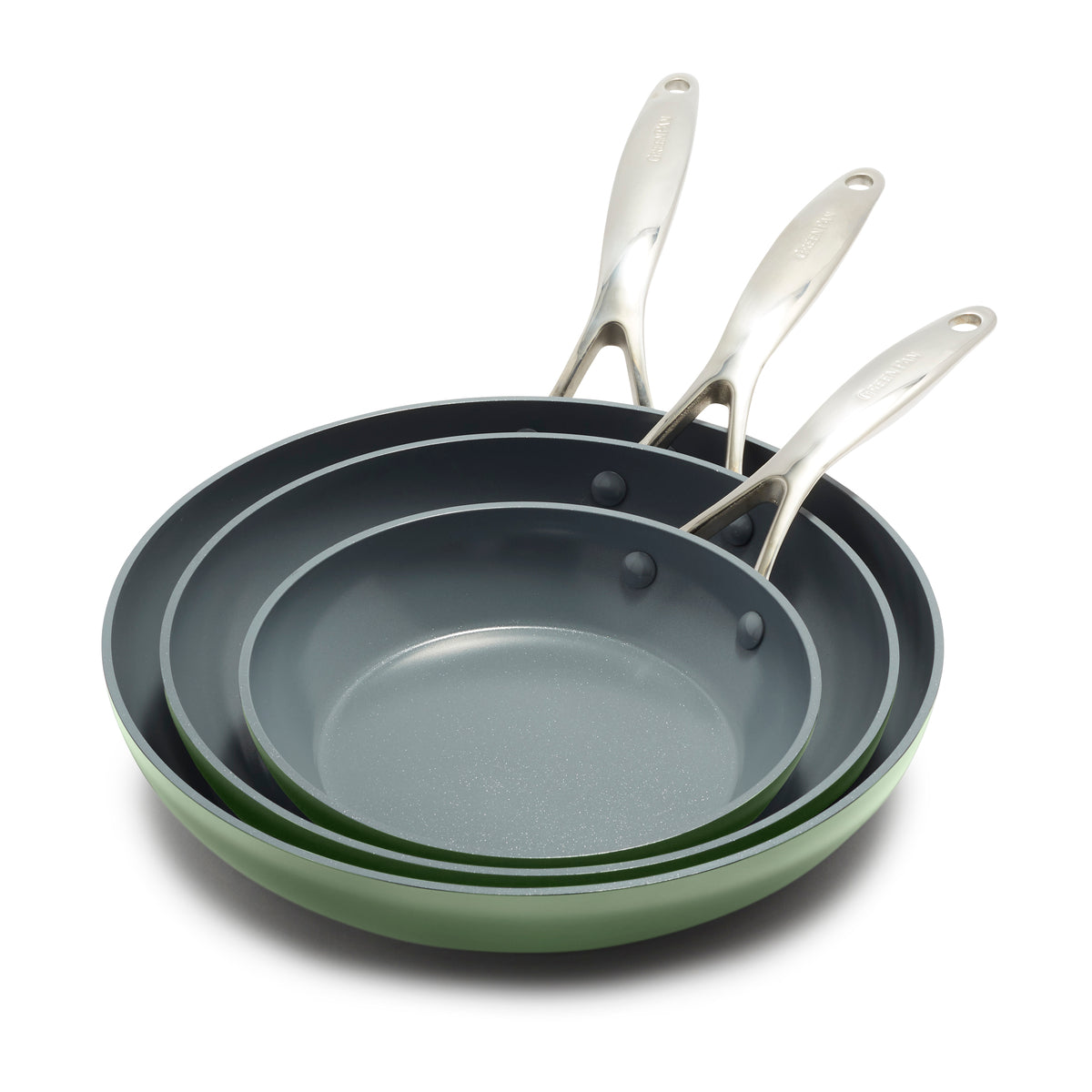 Valencia Pro Ceramic Nonstick 8. 9.5. and 11 Frypan Set | Sage