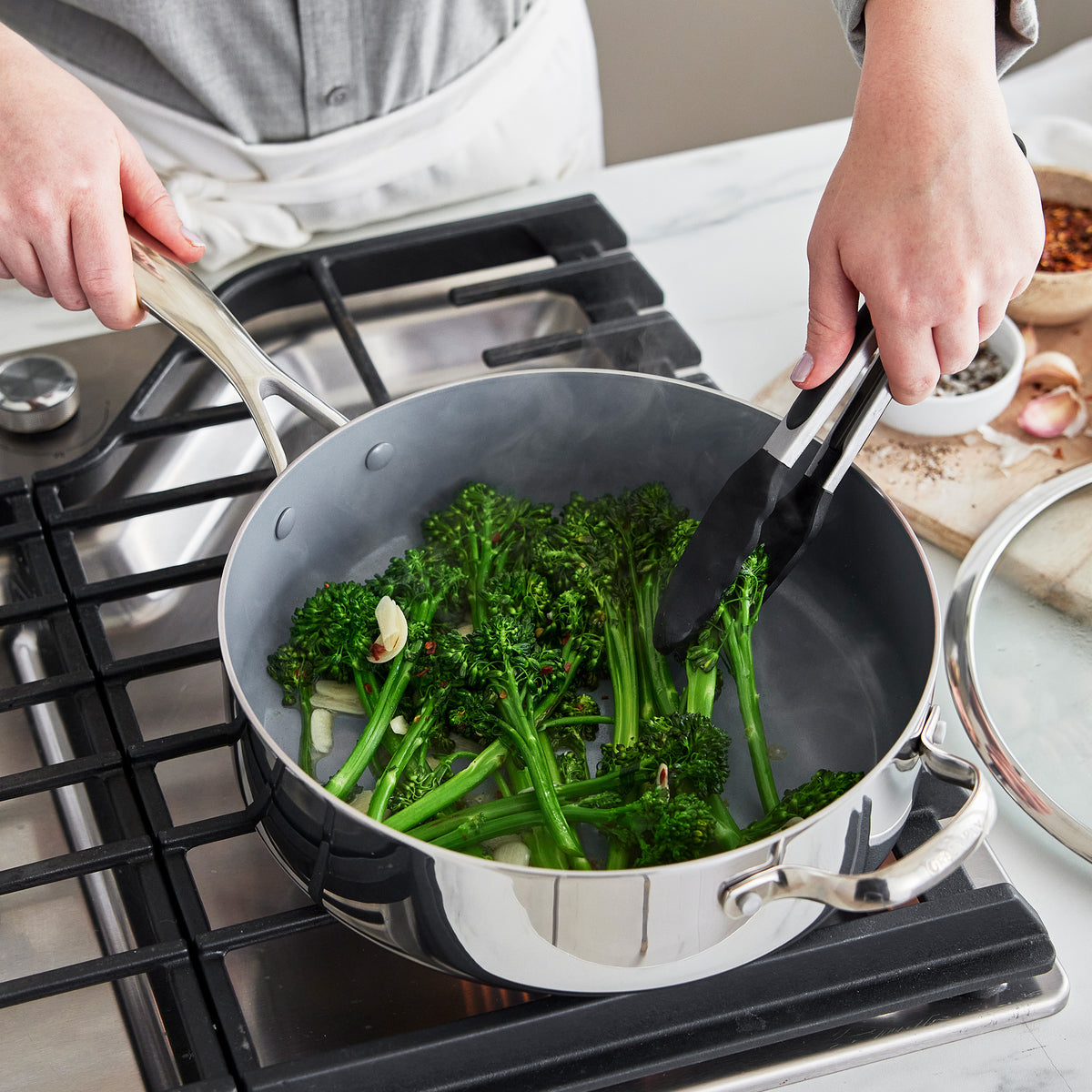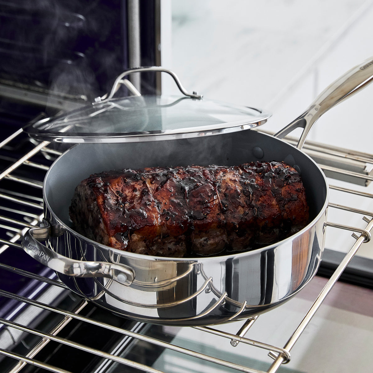 Ideal for one-pan meals and family-sized tasks. this pan makes running out of room a thing of the past. The spacious 5-quart interior features our groundbreaking Thermolon 9G ceramic nonstick coating. so your big meals won’t require a big cleanup.